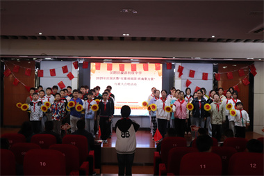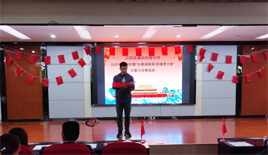 比赛在庄严的国歌声中拉开帷幕。全体师生肃立齐唱《义勇军进行曲》,激昂的旋律回荡在整个会场,为整场活动奠定了庄严而热烈的基调。随后,学校负责人登台致辞。他首先代表学校向为本次比赛辛勤付出的全体班主任、音乐教师和工作人员表示衷心感谢,对同学们连日来认真排练、全情投入表示高度赞扬。他在讲话中指出,红歌传唱不仅是对革命精神的致敬,更是学校爱国主义教育的重要载体,希望同学们在歌声中重温历史、感悟初心,唱出新时代青少年的责任与担当,在集体协作中凝聚力量、共同成长。致辞饱含深情,现场掌声如潮。