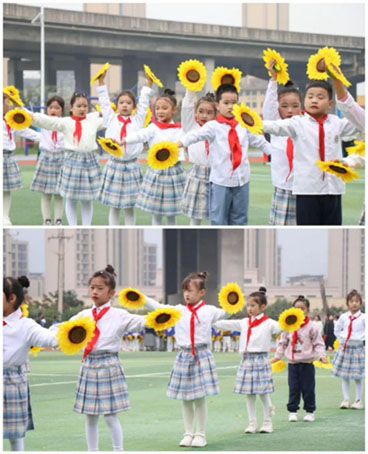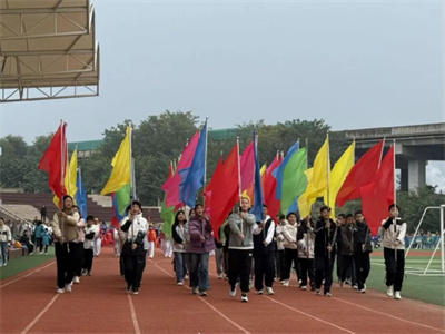 彩旗队的同学们手擎五彩旗帜,步伐坚定、意气风发。红色旗帜似火焰,点燃赛场热血;蓝色旗帜如晴空,承载少年理想;黄色旗帜若朝阳,照亮拼搏之路;绿色旗帜像春芽,涌动青春活力。五彩的旗帜在风中猎猎飞扬,不仅是视觉的盛宴,更是运动精神的象征。